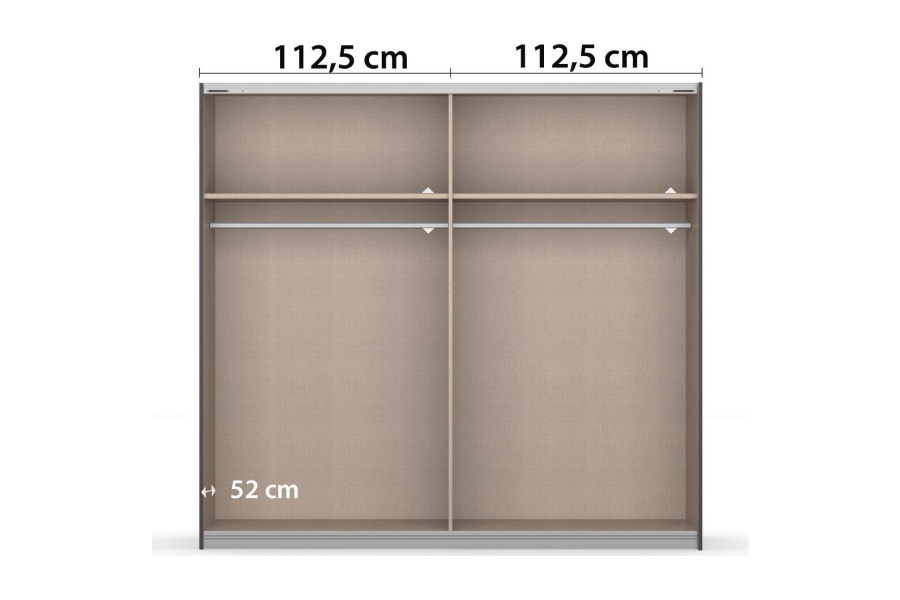 - Dulapul are inclusa 1 polite si 1 bara pentru umeras pentru fiecare compartiment, in total 2 polite si 2 bare pentru umerase de 111x48cm.