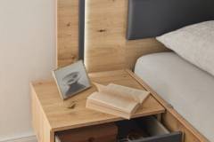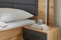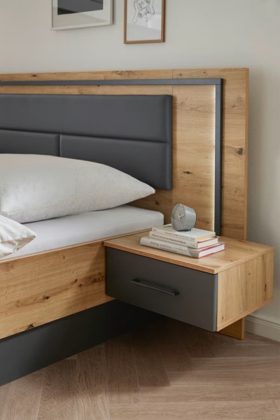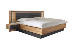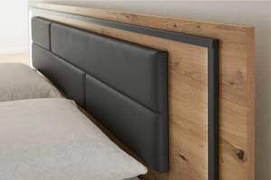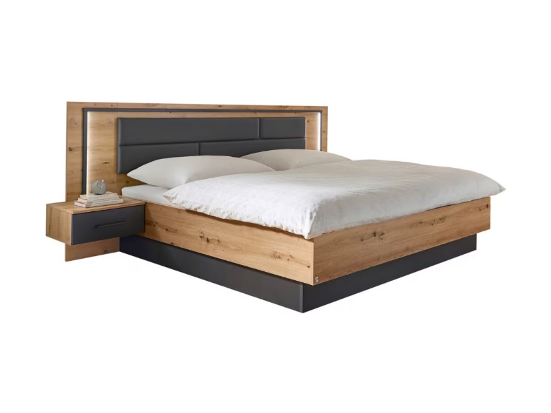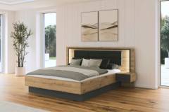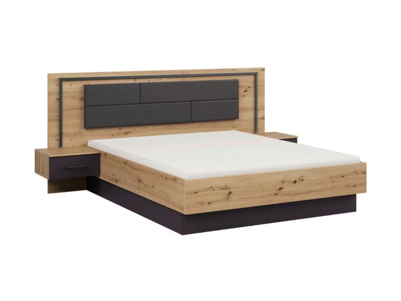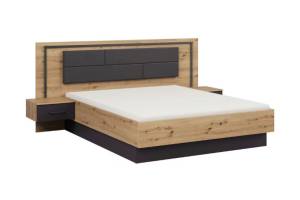 Cadru pat cu led si noptiere incorporate BILBAO (180x200cm) stejar artisan/ gri metalic - ecopiele neagra