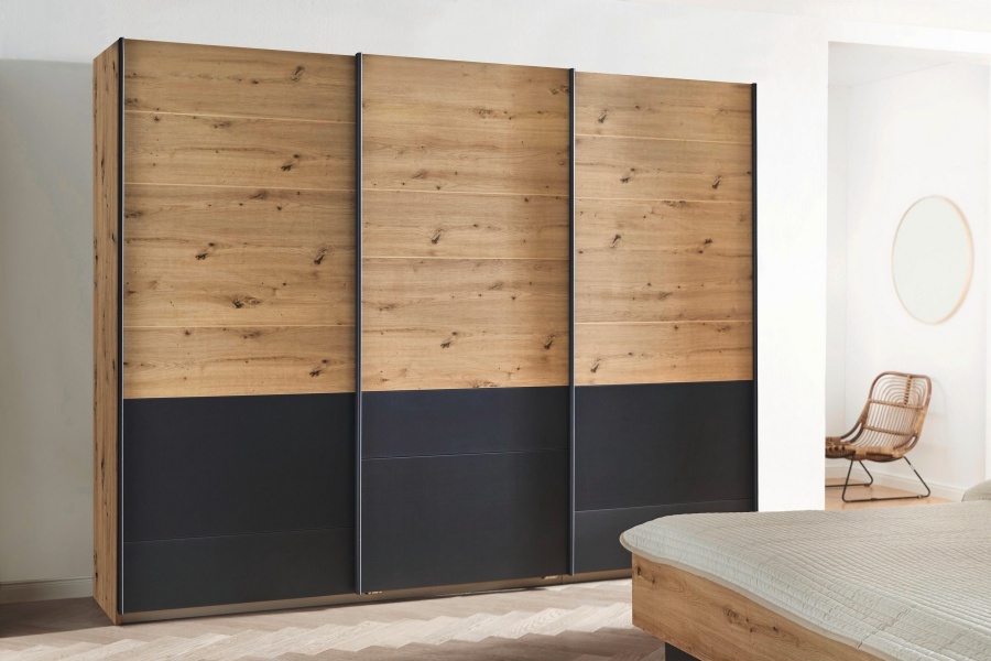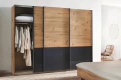Dulap cu usi glisante BILBAO 271x210x62cm stejar artisan/ gri metalic, maner gri metalic
