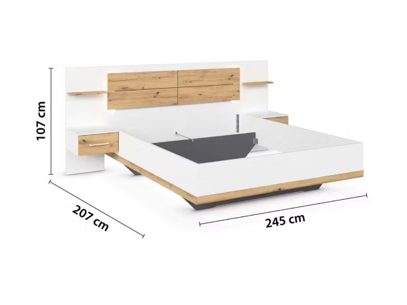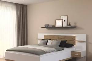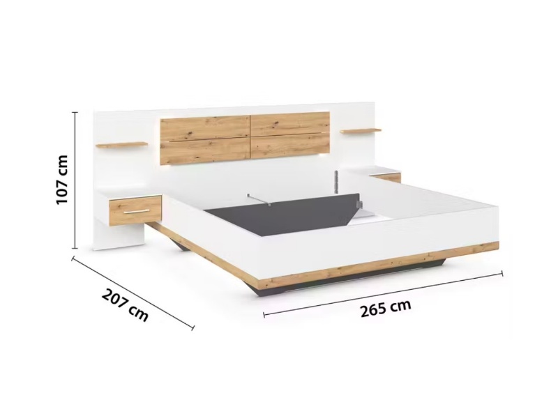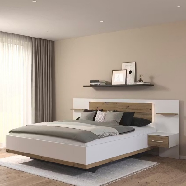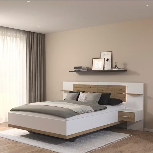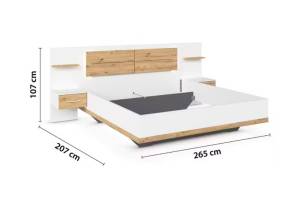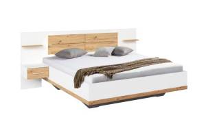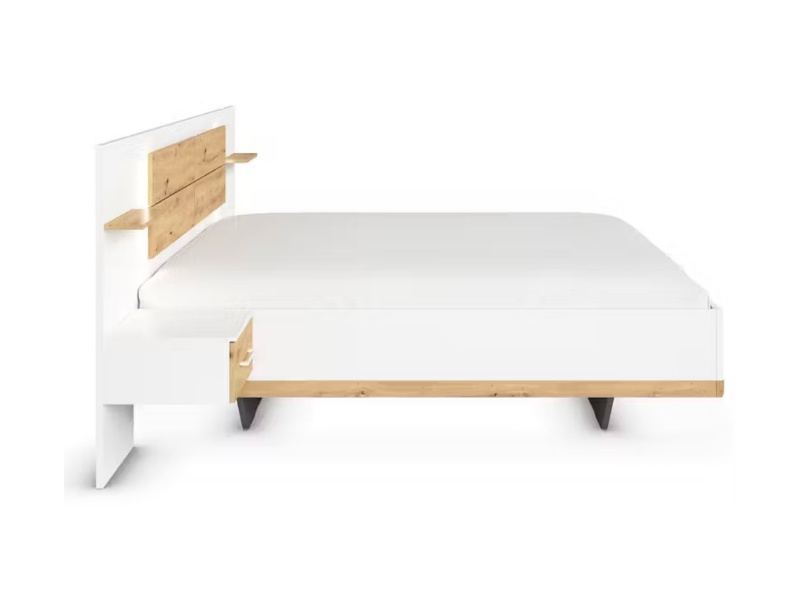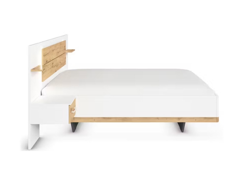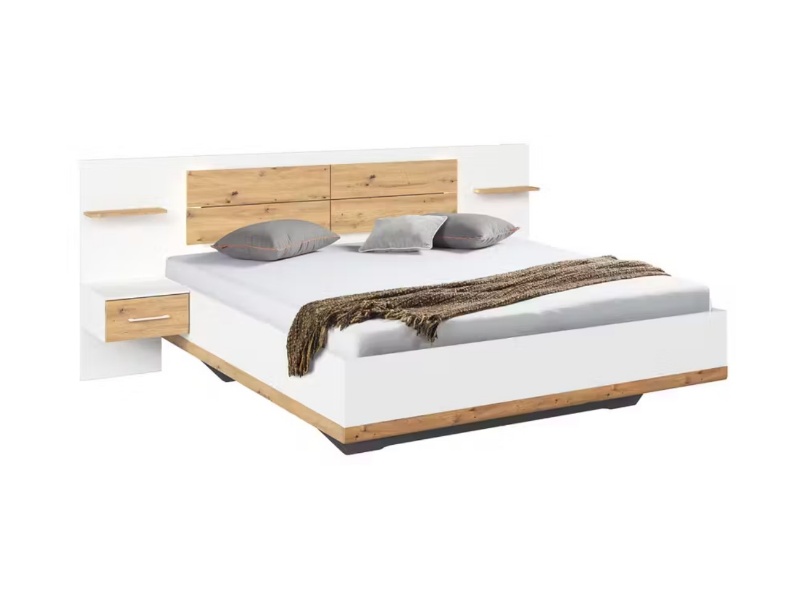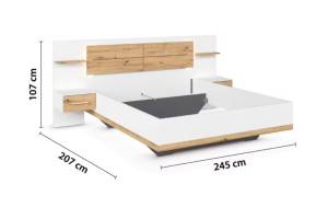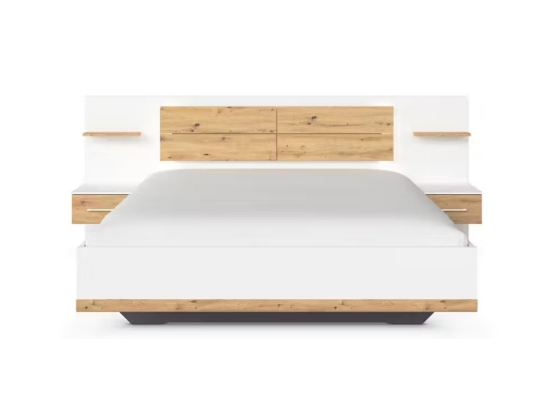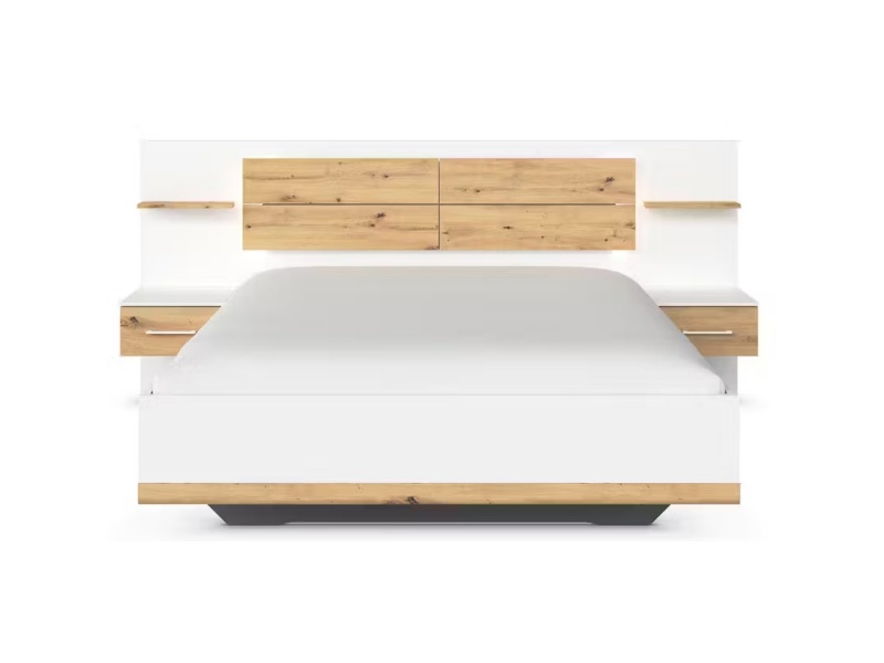 Cadru pat cu noptiere incorporate BOSTON EXTRA 160 / 180cm alb alpin/ stejar Artisan