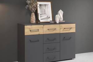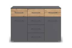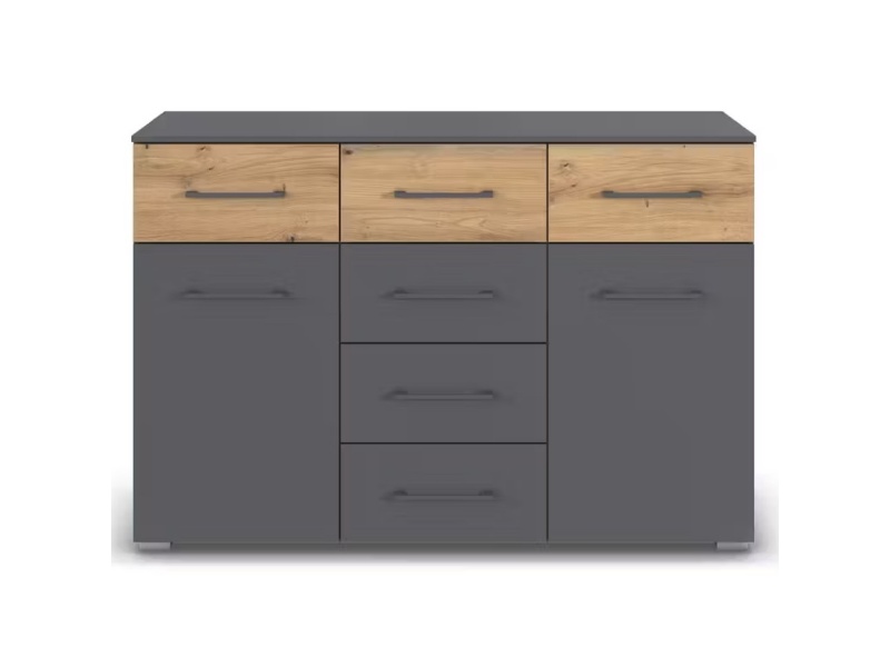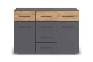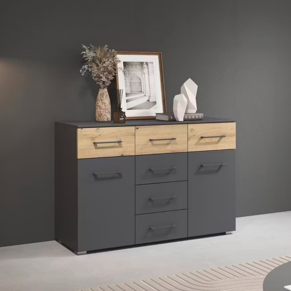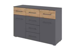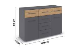 Comoda cu 2 usi si 6 sertare BOSTON EXTRA 120x81x42cm gri metalic/ stejar artisan