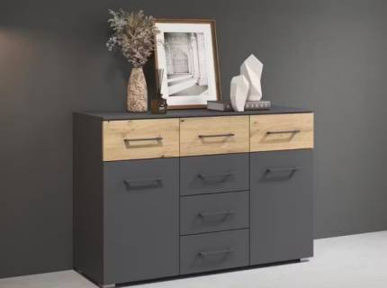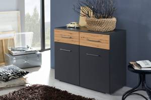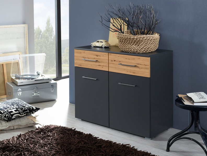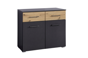 Comoda cu 2 usi si 2 sertare BOSTON EXTRA 93x81x42cm gri metalic/ stejar artisan