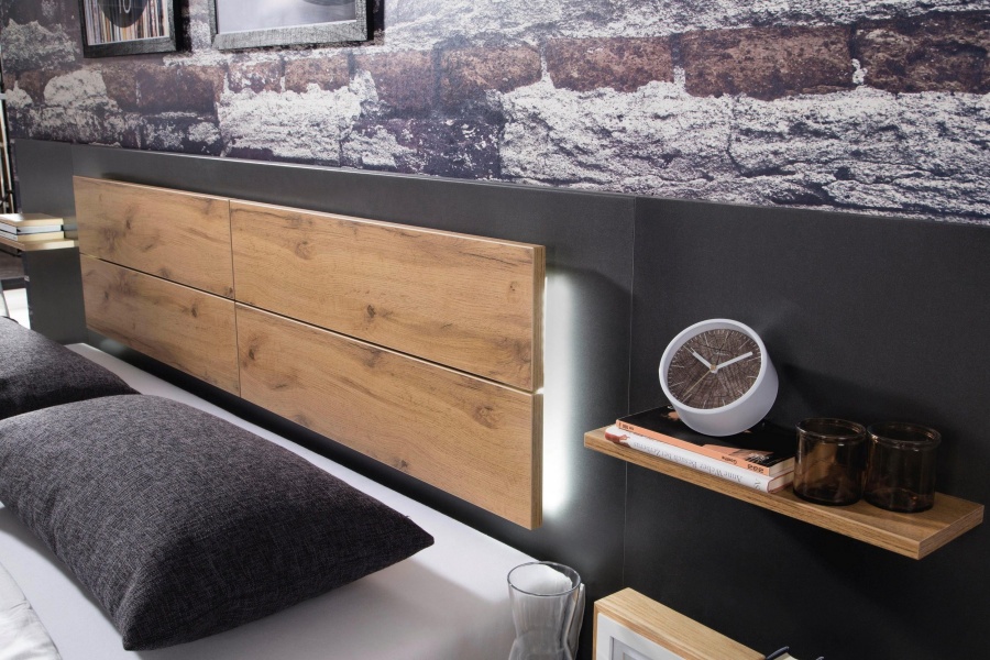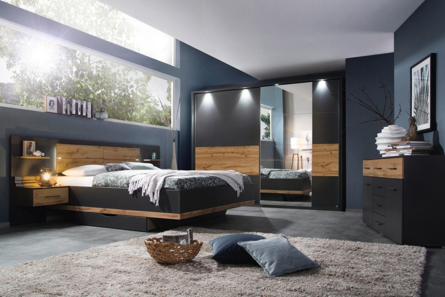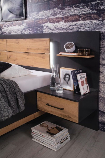 Dormitor L gri metalic/stejar artisan BOSTON EXTRA