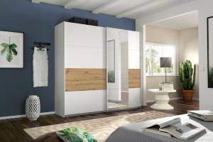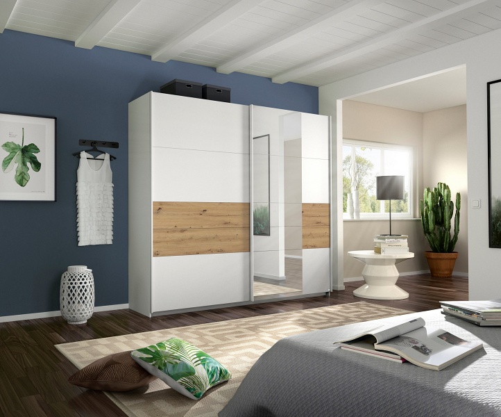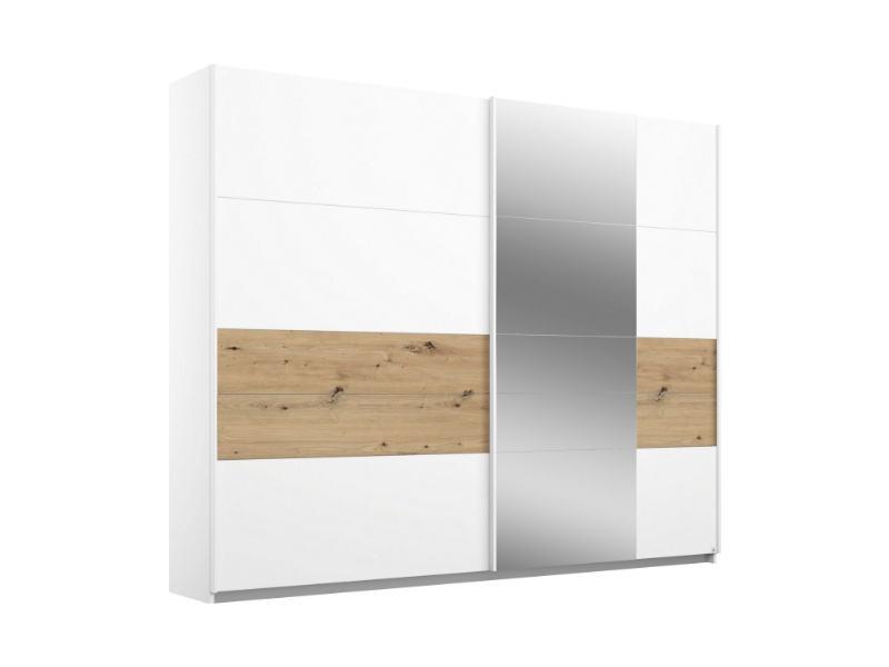 Dulap cu usi glisante BOSTON EXTRA 226x210x62cm alb alpin/ stejar Artisan - oglinda, maner aluminiu