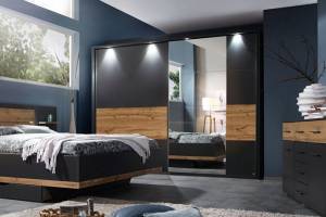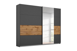 Dulap cu usi glisante BOSTON EXTRA 226x210x62cm gri metalic/ stejar - oglinda, maner gri metalic/ aluminiu