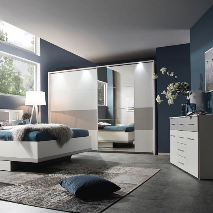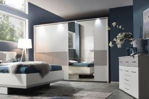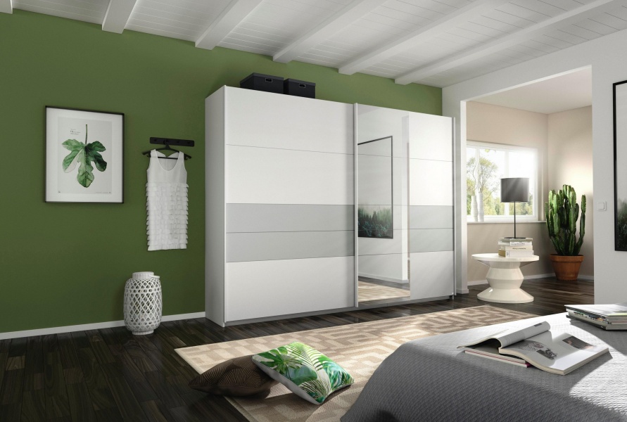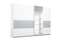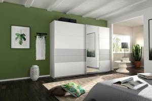 Dulap cu usi glisante BOSTON EXTRA 271x210x62cm alb alpin/ silk grey - oglinda, maner alb alpin