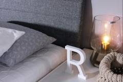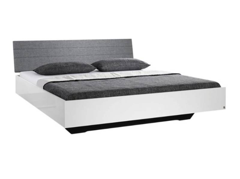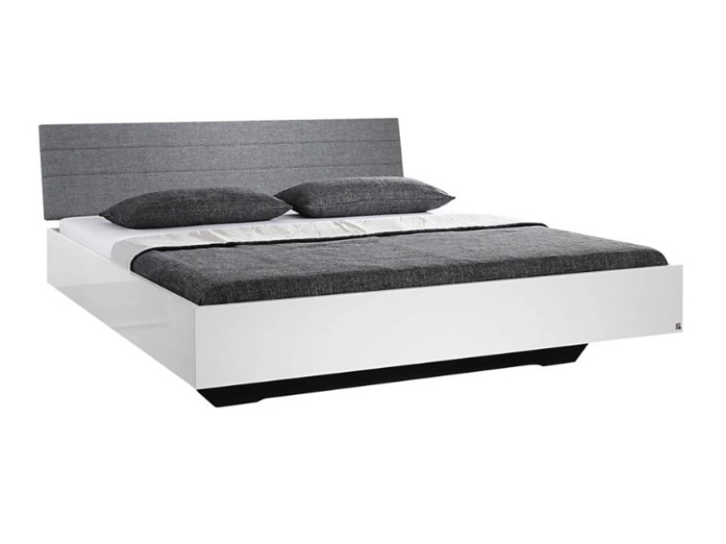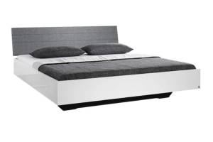 Cadru pat cu tablie tapitata HALLE (160x200cm) alb lucios + material textil gri