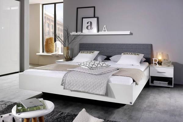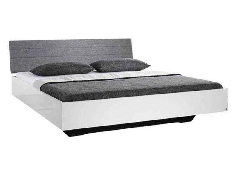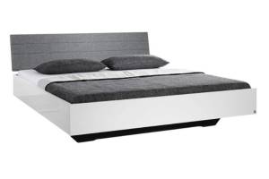 Cadru pat cu tablie tapitata HALLE (180x200cm) alb lucios + material textil gri