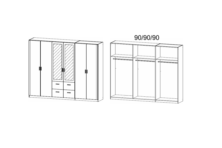 - 277 / 214 / 57 cm (6 usi + 4 sertare)