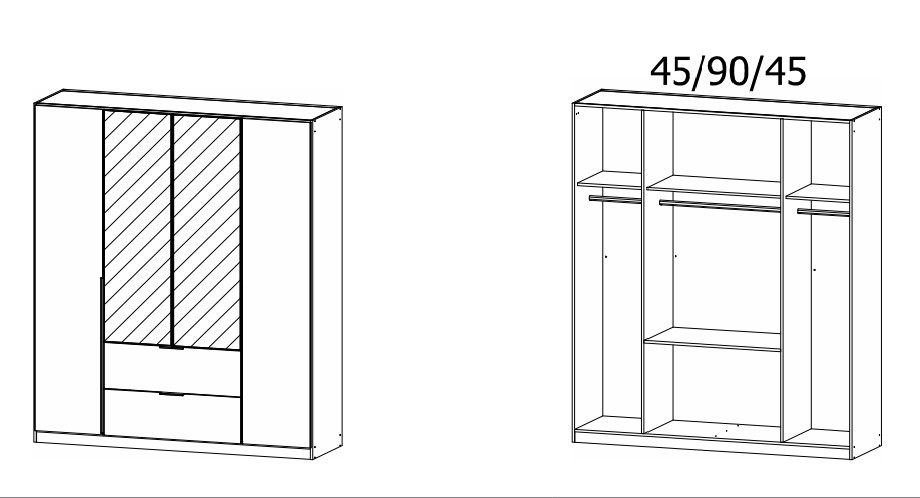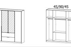 - 181 / 210 / 54 cm (4 usi + 2 sertare)