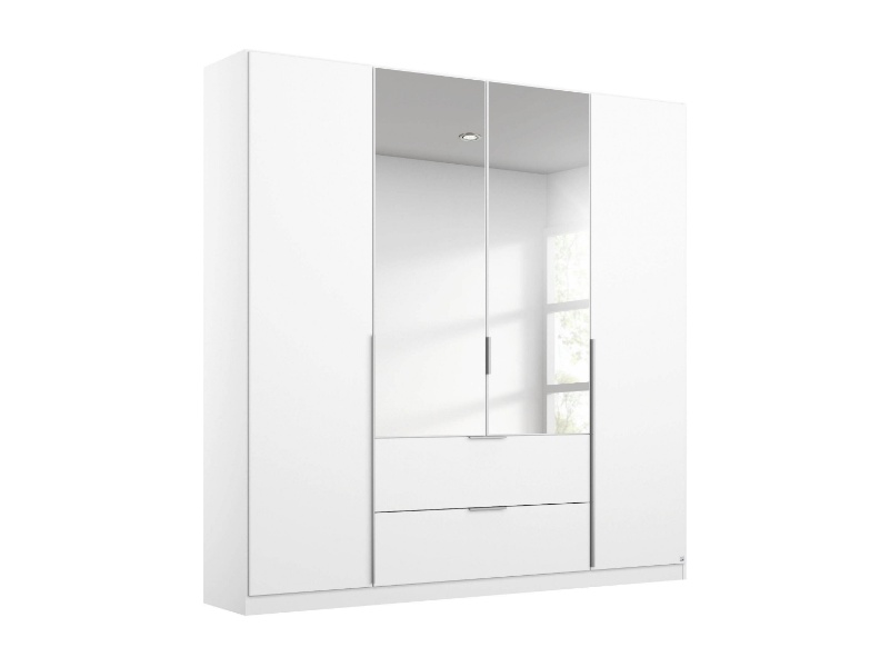 Dulap cu 4 usi cu balamale si 2 sertare MEMPHIS 181x210x54cm alb alpin/ oglinda