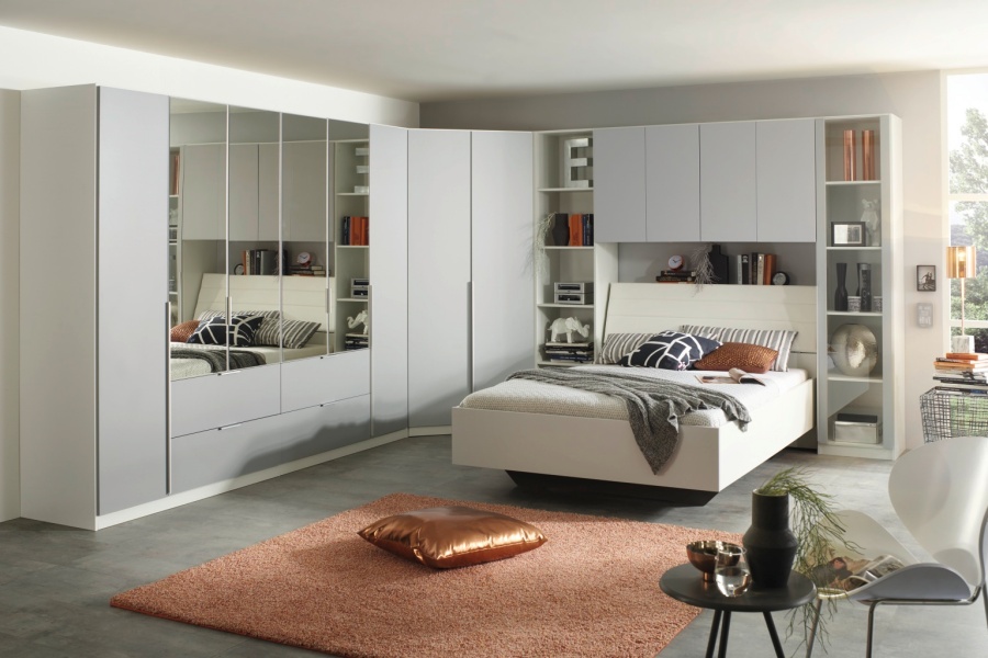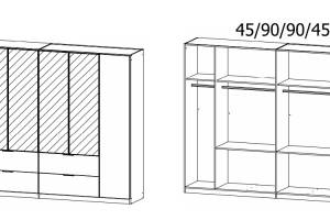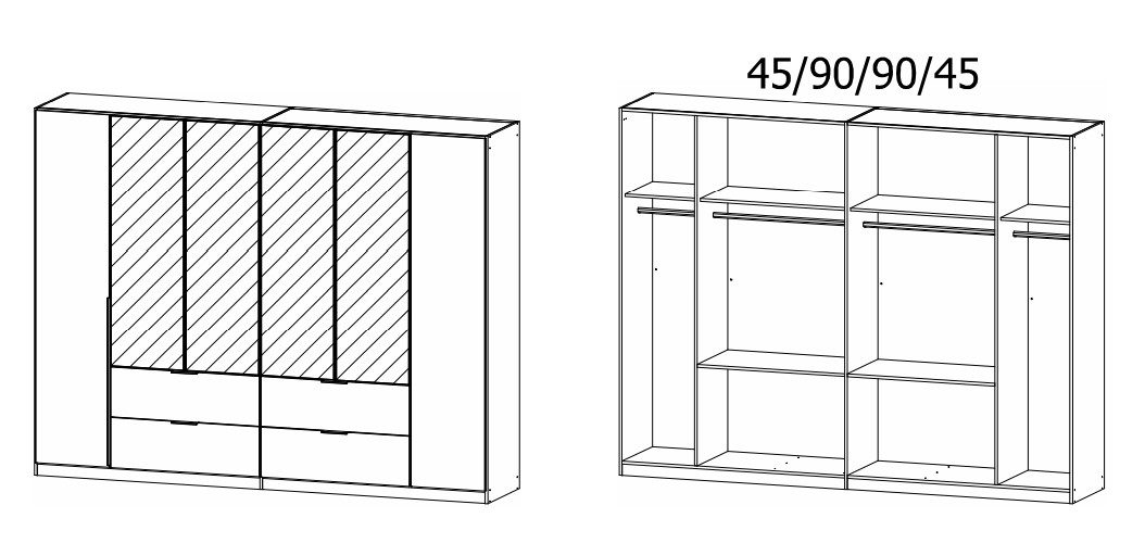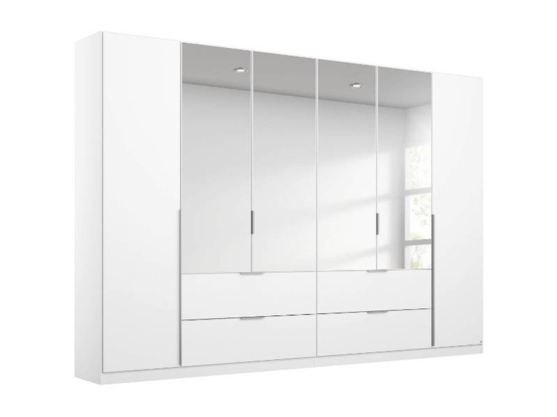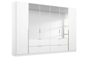 Dulap cu 6 usi cu balamale si 4 sertare MEMPHIS 271x210x54cm alb alpin/ oglinda
