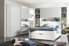Dulap cu usi glisante MEMPHIS 226x210x62cm alb alpin/ oglinda, maner aluminiu