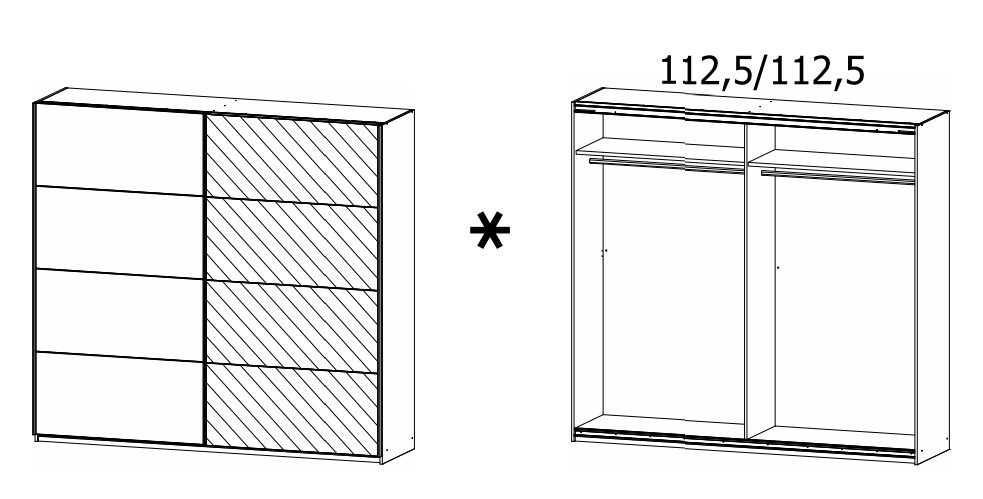 - Dulapul are inclusa 1 polite si 1 bara pentru umeras pentru fiecare compartiment, in total 2 polite si 2 bare pentru umerase de 111x48cm.