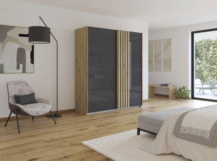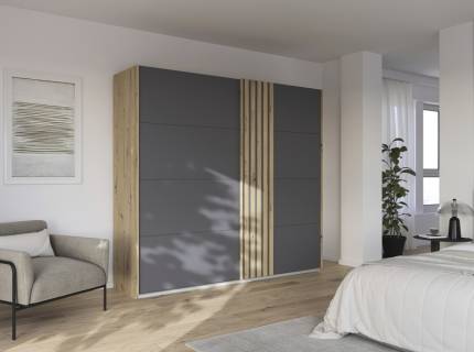 Dulap cu usi glisante MOSBACH 226x210x62cm stejar Artisan/ gri metalic