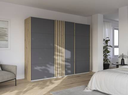 Dulap cu usi glisante MOSBACH 271x210x62cm stejar Artisan/ gri metalic