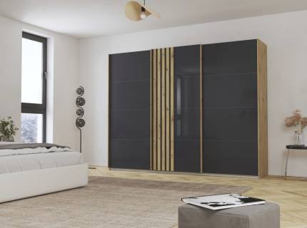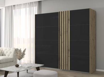 Dulap cu usi glisante MOSBACH 271x210x62cm stejar Artisan/ sticla basalt