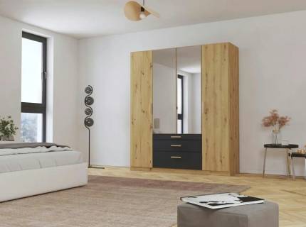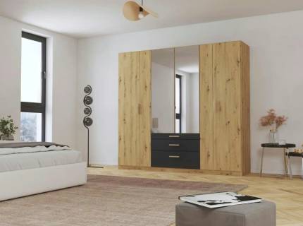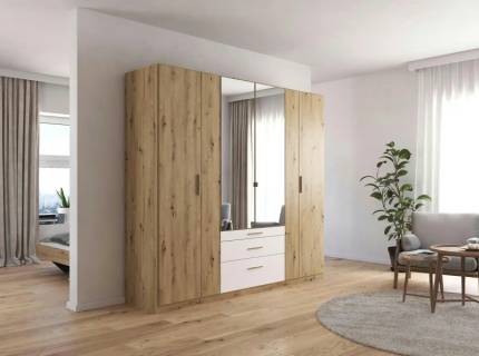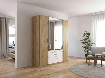 Dulap cu 4 usi cu balamale si 3 sertare MOSBACH 181x210x54cm stejar Artisan/ alb alpin