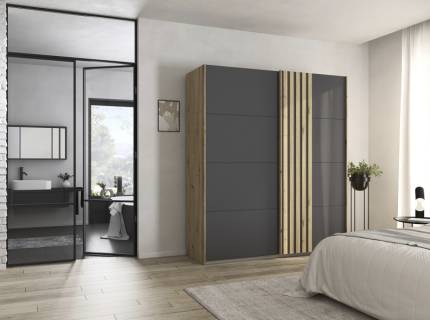 Dulap cu usi glisante MOSBACH 181x210x62cm stejar Artisan/ gri metalic