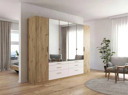 Dulap cu 6 usi cu balamale si 6 sertare MOSBACH 271x210x54cm stejar Artisan/ alb alpin