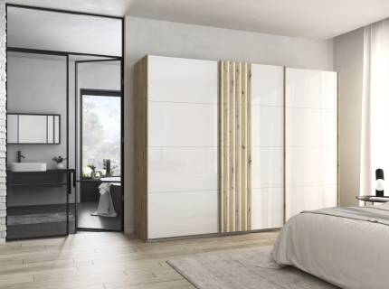 Dulap cu usi glisante stejar MOSBACH 271x210x62cm sanremo/ sticla alba