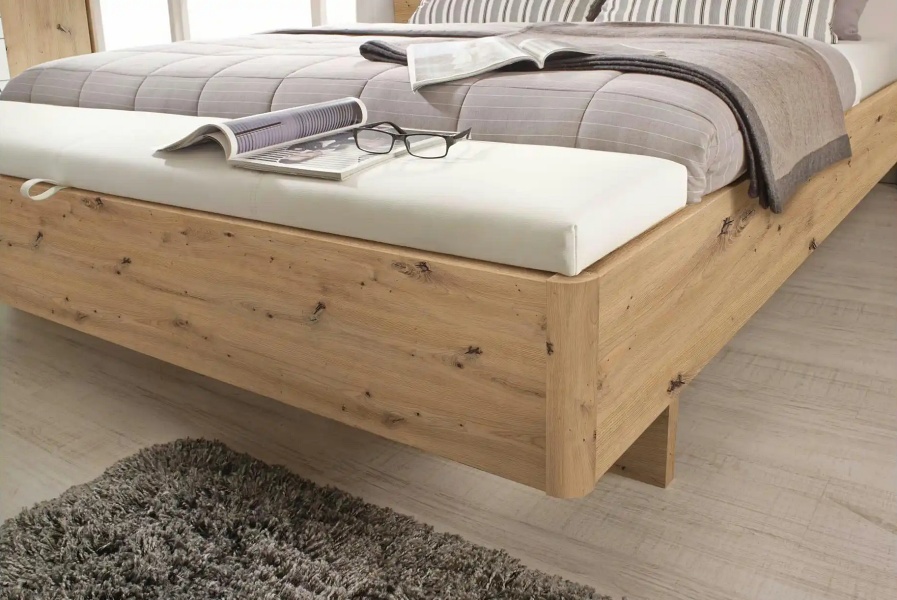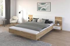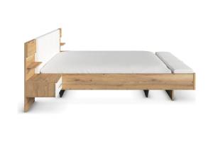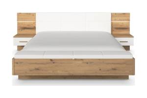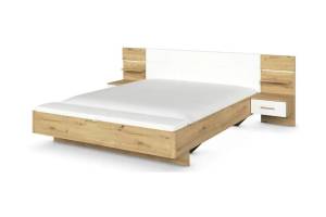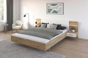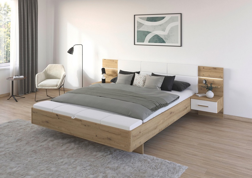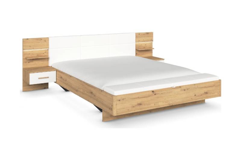 Cadru pat cu noptiere cu led incorporate MOSBACH (180x200cm) stejar Artisan/ alb alpin + ecopiele