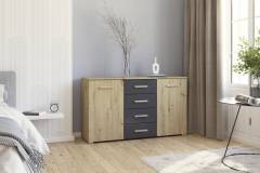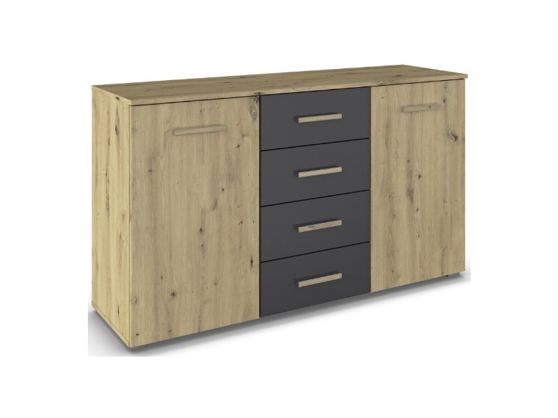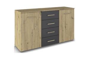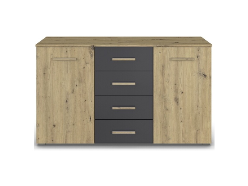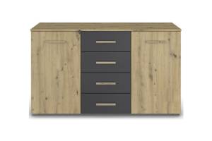 Comoda cu 2 usi si 4 sertare MOSBACH 120x81x42cm stejar artisan/ gri metalic