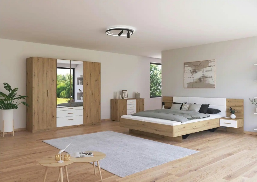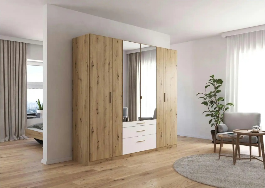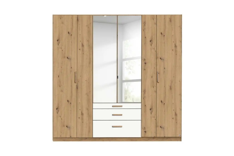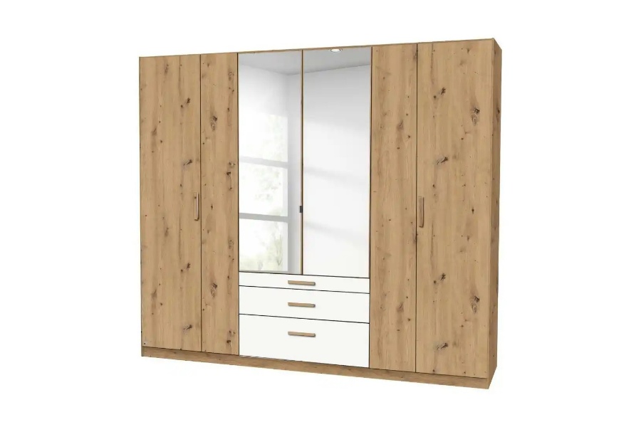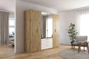 Dulap cu 6 usi cu balamale si 3 sertare MOSBACH 226x210x54cm stejar Artisan/ alb alpin