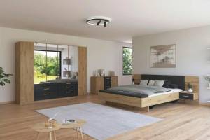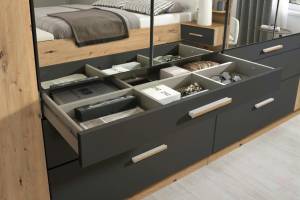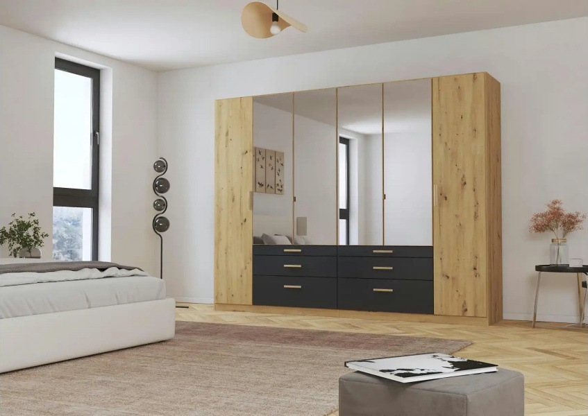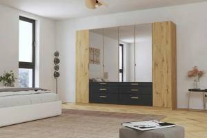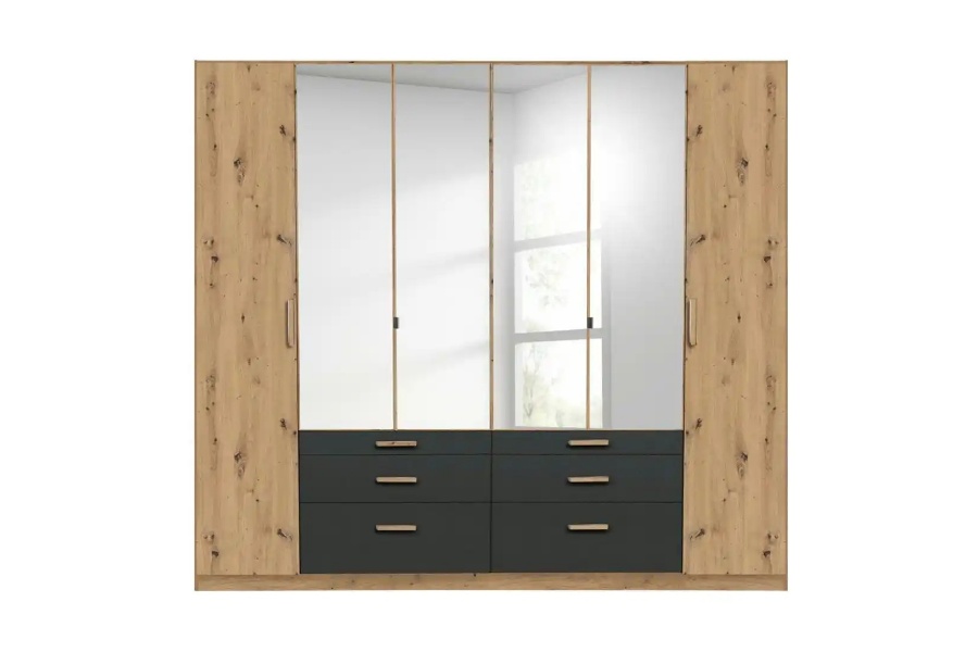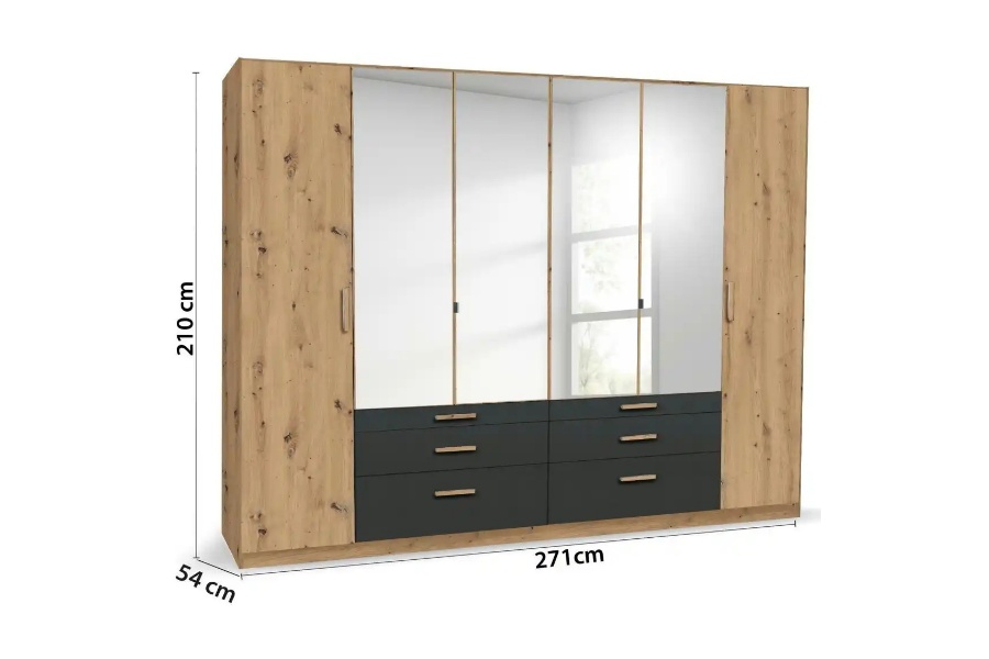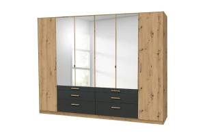 Dulap cu 6 usi cu balamale si 6 sertare MOSBACH 271x210x54cm stejar Artisan/ gri metalic