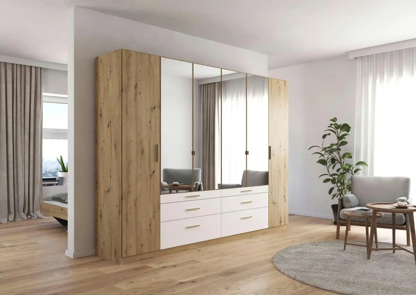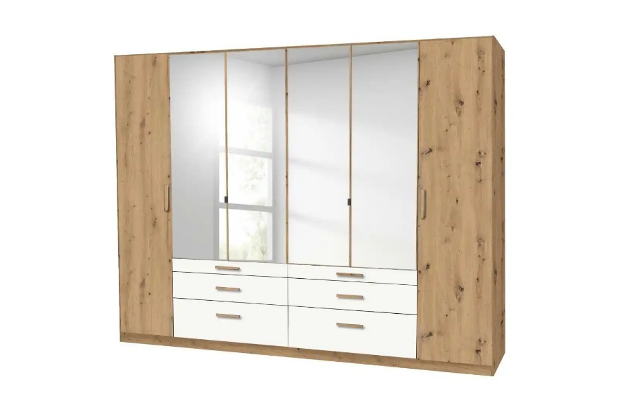 Dulap cu 6 usi cu balamale si 6 sertare MOSBACH 271x210x54cm stejar Artisan/ alb alpin