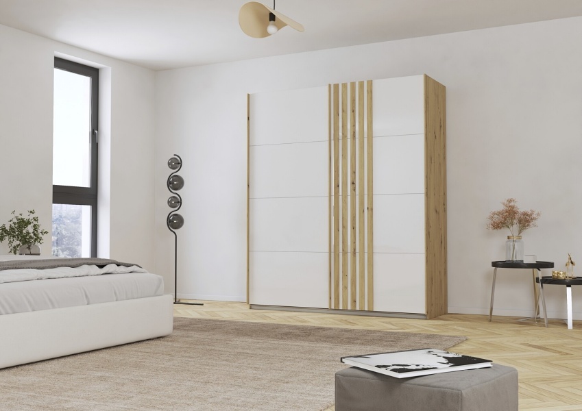 Dulap cu usi glisante MOSBACH 271x210x62cm stejar Artisan/ alb alpin