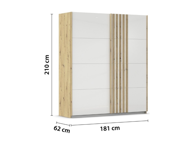Dulap cu usi glisante MOSBACH 181x210x62cm stejar Artisan/ sticla alba