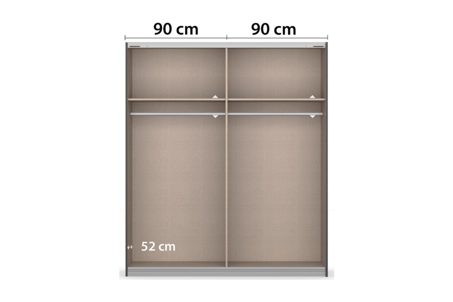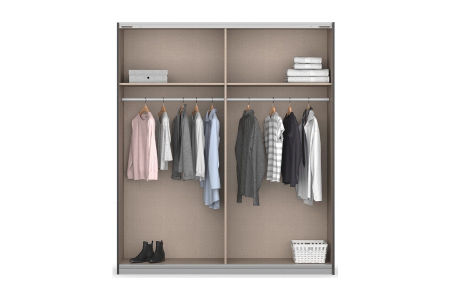 - Dulapul are inclusa 1 polite si 1 bara pentru umers pentru fiecare compartiment, in total 2 polite si 2 bare pentru umerase.