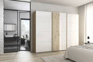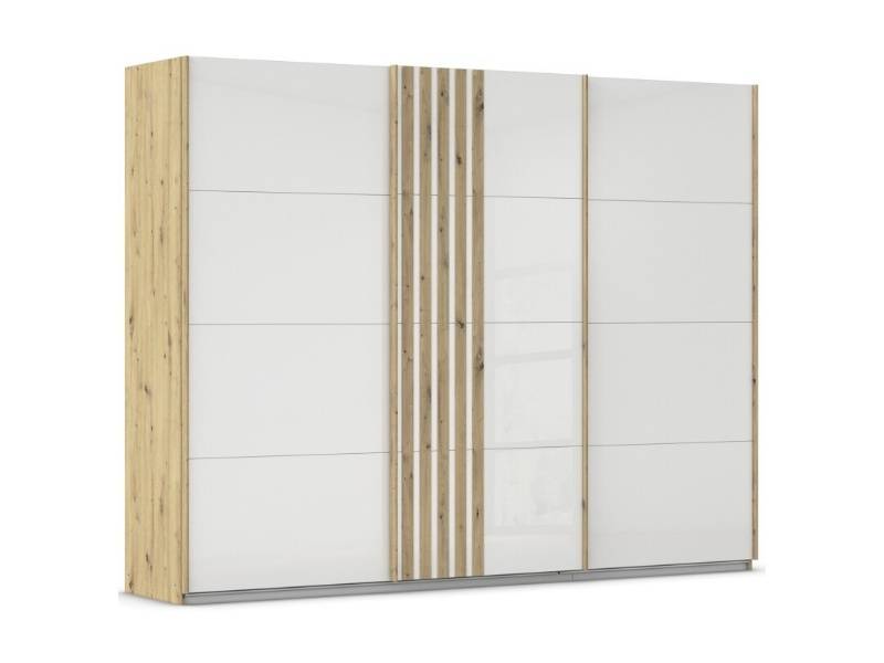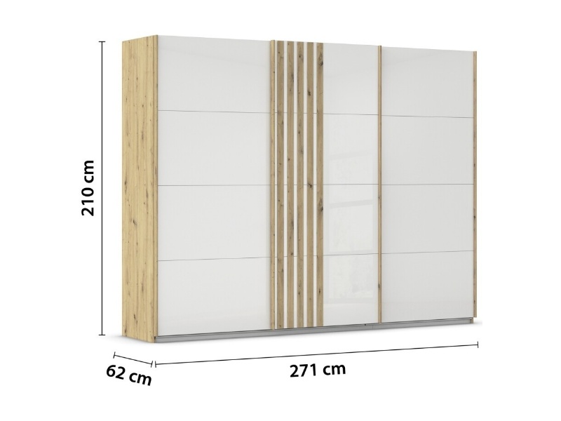 Dulap cu usi glisante MOSBACH 271x210x62cm stejar Artisan/ sticla alba