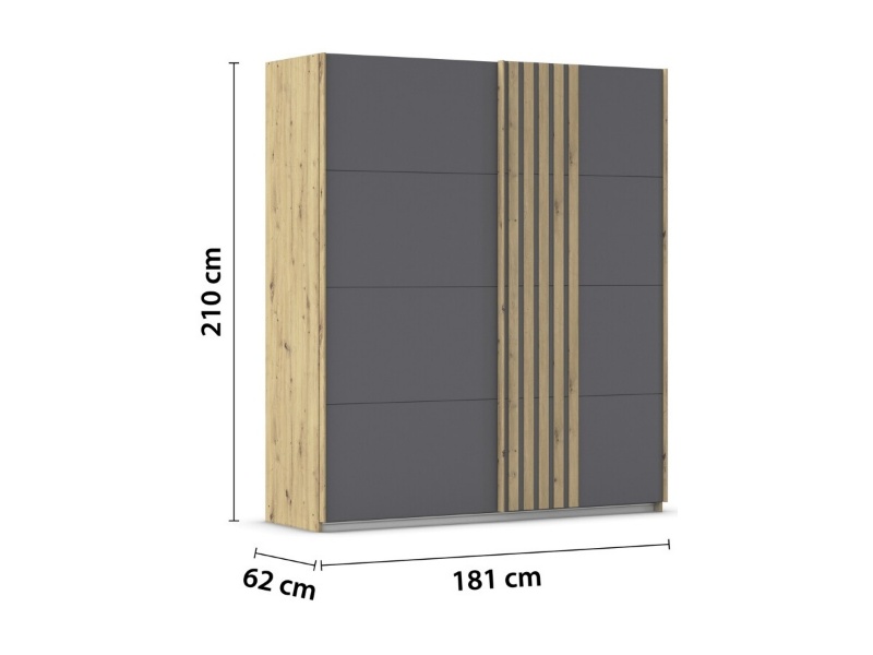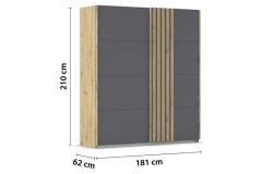 Dulap cu usi glisante MOSBACH 181x210x62cm stejar Artisan/ gri metalic