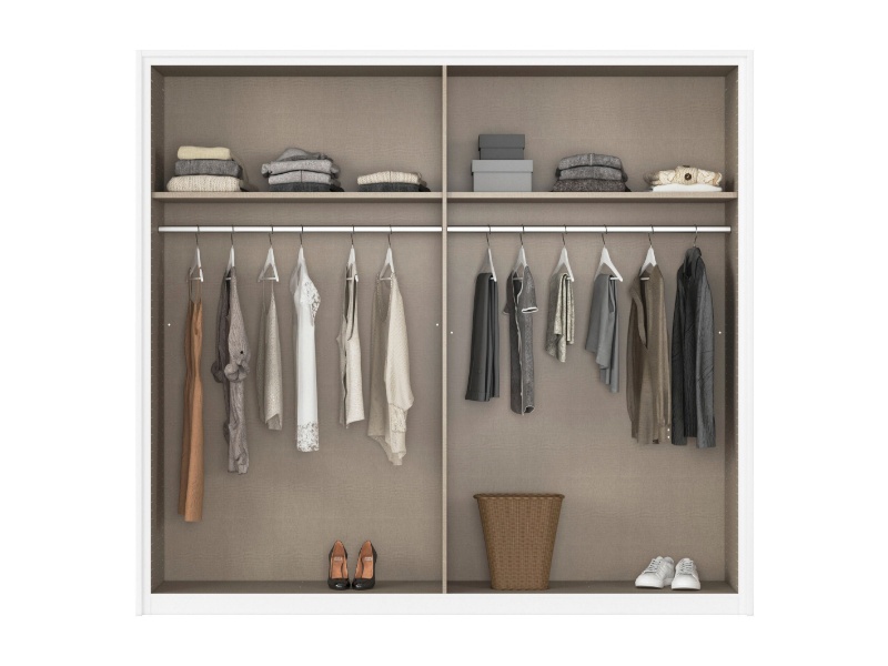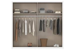 - Dulapul are inclusa 1 polite si 1 bara pentru umeras pentru fiecare compartiment, in total 2 polite si 2 bare pentru umerase de 107x45cm.