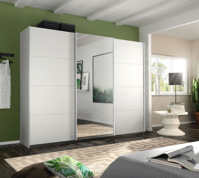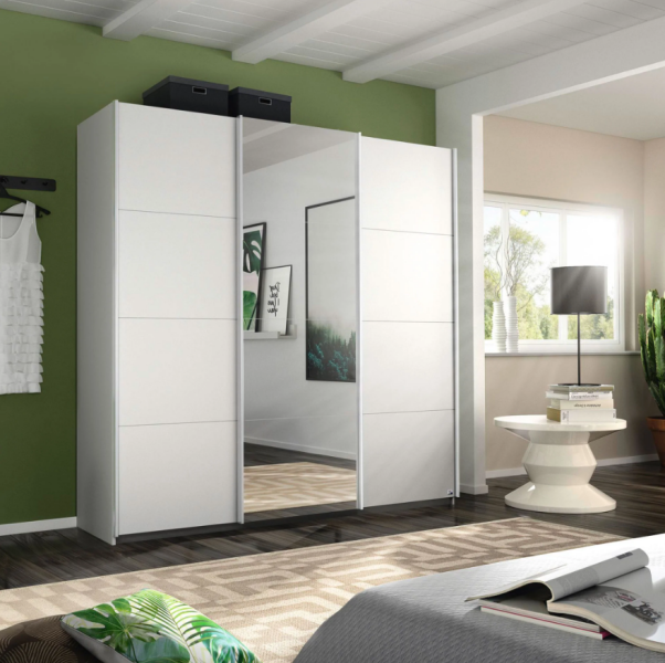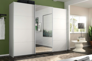 Dulap cu usi glisante KULMBACH 203x210x62cm alb alpin/oglinda configurabil