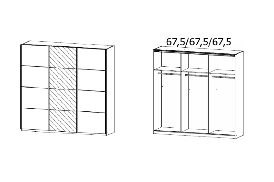 - Dulapul are inclus 1 polita si 1 bara pentru umeras pentru fiecare comaprtiment, in total 3 polite 66x48cm si 3 bare pentru umerase.