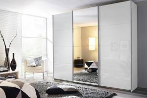 Dulap cu usi glisante KULMBACH 203x210x62cm alb alpin/ sticla alba-oglinda configurabil