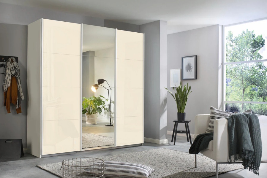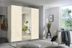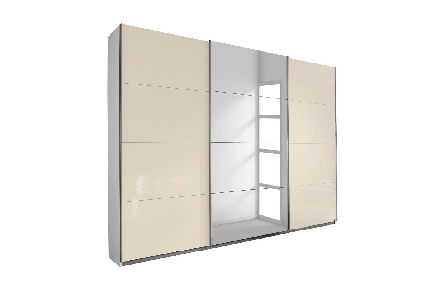 Dulap cu usi glisante KULMBACH 203x210x62cm alb alpin/ sticla champagne-oglinda configurabil