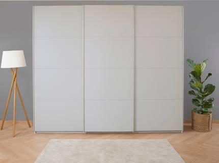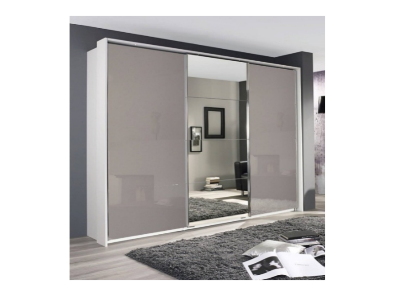 Dulap cu usi glisante KULMBACH 203x210x62cm alb alpin/ sticla fango - oglinda configurabil
