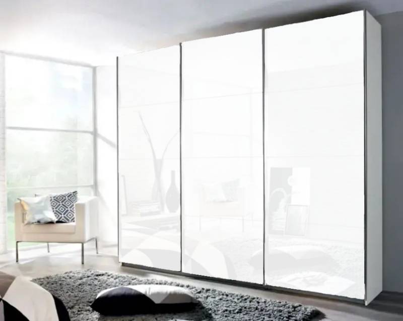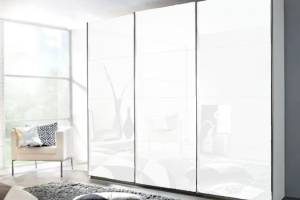 Dulap cu usi glisante KULMBACH 203x229x62cm alb alpin/ 3 usi sticla alba configurabil