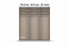 - Pentru compartimentele de 67.5cm dulapul are inclus 2 polite si 1 bara pentru umeras, in total 6 polite 66x48cm si 3 bare pentru umerase.