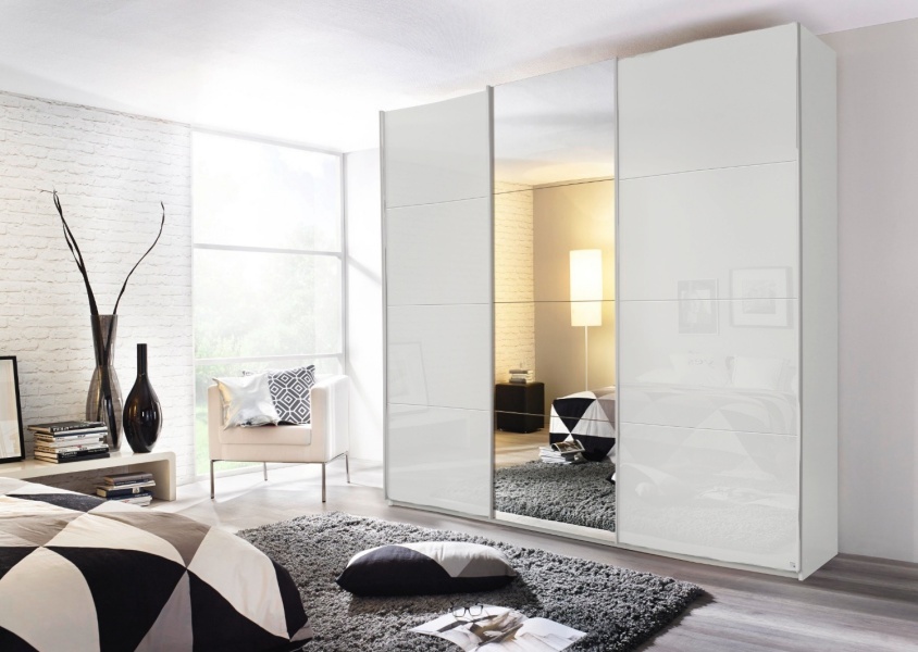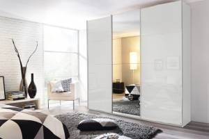 Dulap cu usi glisante KULMBACH 203x229x62cm alb alpin/ sticla alba-oglinda configurabil
