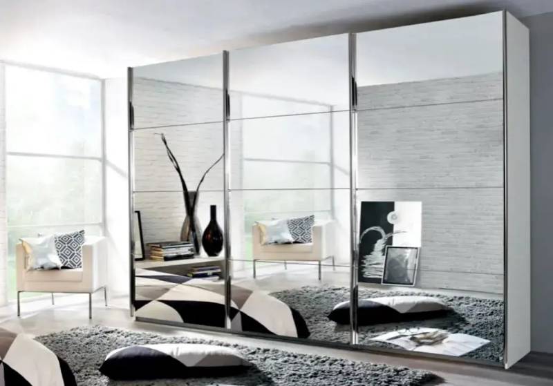 Dulap cu usi glisante KULMBACH 271x210x62cm alb alpin/ 3 usi oglinda configurabil