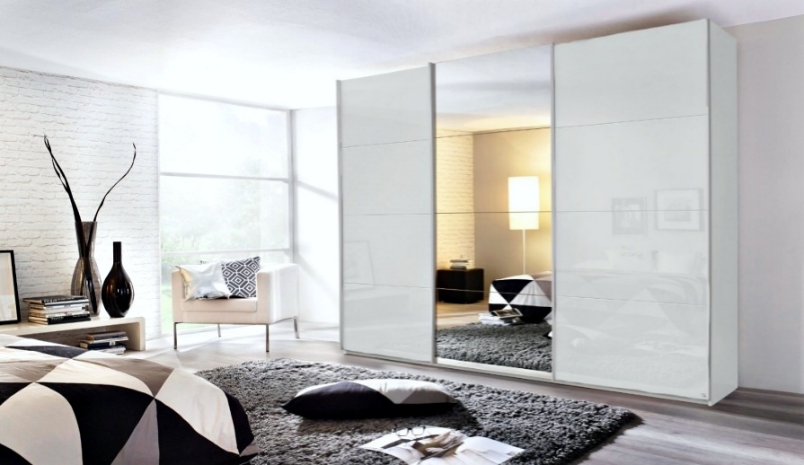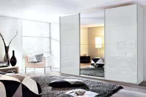 Dulap cu usi glisante KULMBACH 271x210x62cm alb alpin/ alb lucios - oglinda configurabil