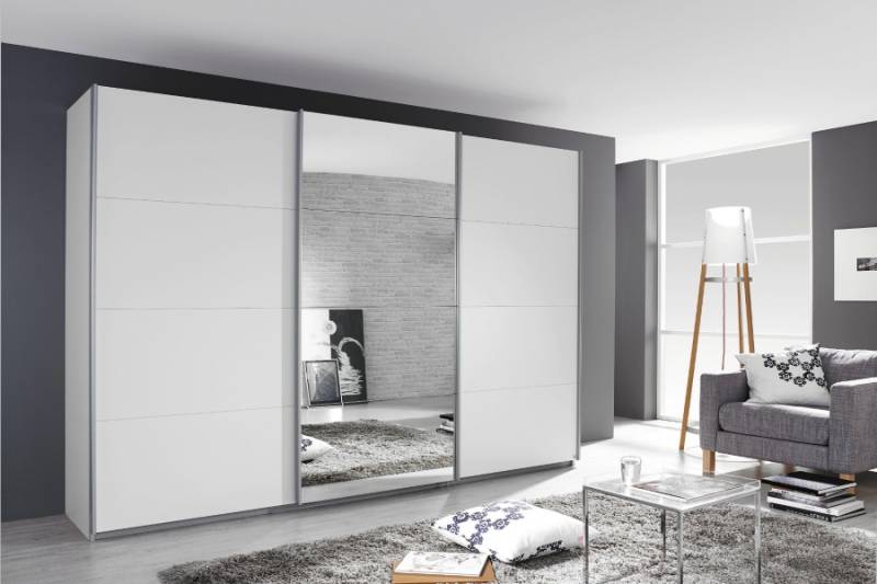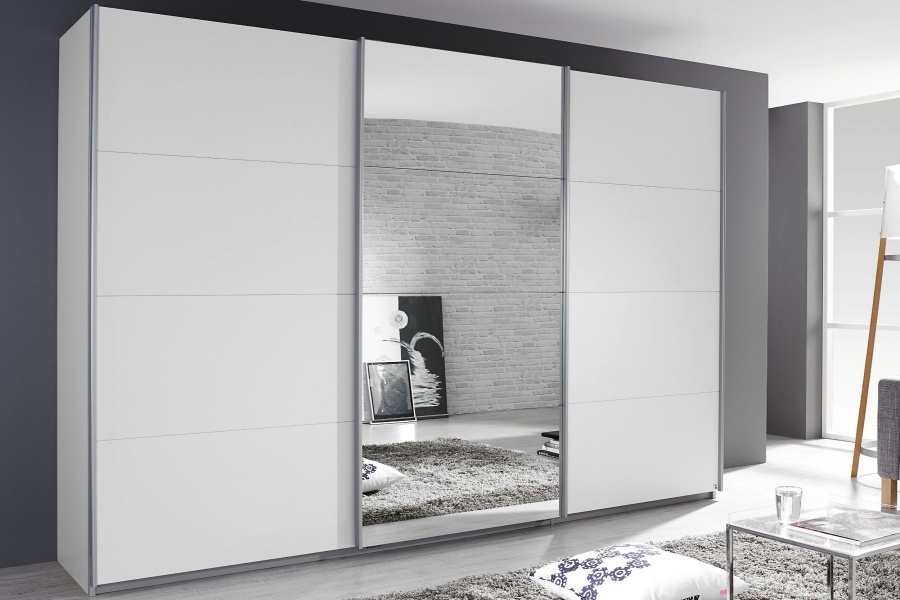 Dulap cu usi glisante KULMBACH 271x210x62cm alb alpin/oglinda configurabil