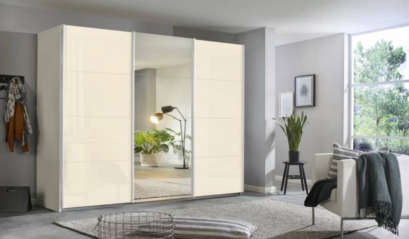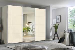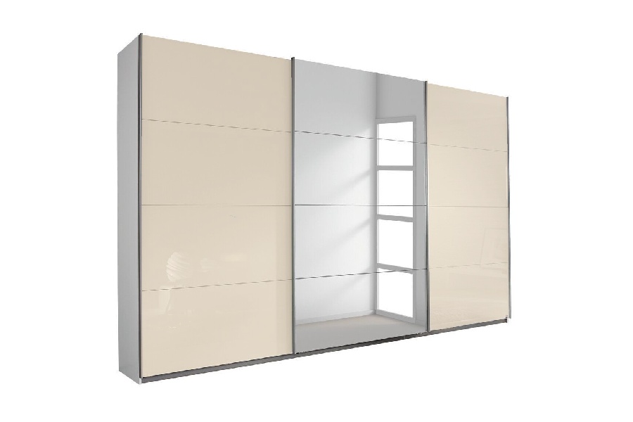 Dulap cu usi glisante KULMBACH 271x229x62cm alb alpin/ sticla champagne-oglinda configurabil