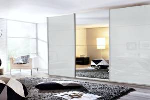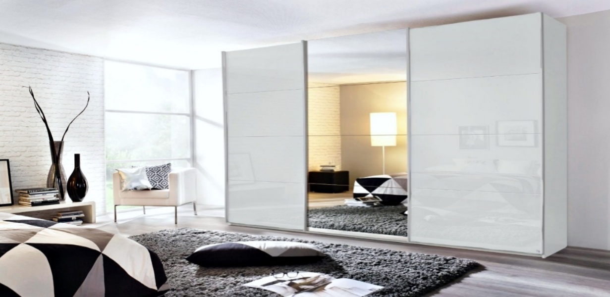 Dulap cu usi glisante KULMBACH 361x210x62cm alb alpin/ alb lucios - oglinda configurabil