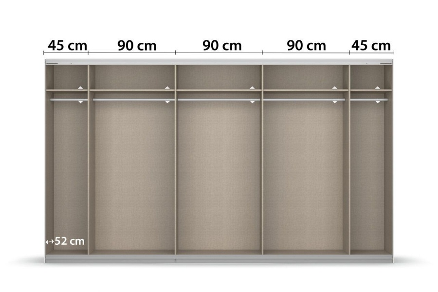 - 5 compartimente: 3 compartimente de 90cm si 2 compartimete de 45cm.